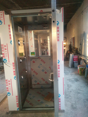1. 風(fēng)淋室由箱體、不銹鋼門(mén)、高效過(guò)濾器、送風(fēng)機(jī)、配電箱、噴嘴等幾大部件組成。   2. 風(fēng)淋室的底板由鋼板折彎焊接而成,表面為乳白色烤漆。   3.箱體采用優(yōu)質(zhì)的冷軋鋼板制造,表面靜電噴塑處理,美觀大方,內(nèi)底板全不銹鋼板制做耐磨擦,易清潔。   4、箱體主材及外形尺寸可根據(jù)客戶要求定制。   單人風(fēng)淋室風(fēng)淋室的作用: 風(fēng)淋室是人員進(jìn)入潔凈室無(wú)塵車(chē)間所必備的凈化設(shè)備,通用性強(qiáng),可與所有的潔凈室和潔凈廠房配套使用,工作人員進(jìn)入車(chē)間時(shí),必須通過(guò)此設(shè)備,用強(qiáng)勁潔凈的空氣,由可旋轉(zhuǎn)噴嘴從各個(gè)方向噴射至人身上,有效而迅速清除去附著在衣服上的灰塵、頭發(fā)、發(fā)屑等雜物,它可以減少人進(jìn)出潔凈室所帶來(lái)的污染問(wèn)題。風(fēng)淋室的兩道門(mén)電子互鎖,可以兼起氣閘室的作用,阻止外界污染和未被凈化的空氣進(jìn)入潔凈區(qū)域。杜絕工作人員將頭發(fā),灰塵、細(xì)菌帶入車(chē)間,達(dá)到工作場(chǎng)地嚴(yán)格的無(wú)塵凈化標(biāo)準(zhǔn),生產(chǎn)出高質(zhì)量的產(chǎn)品。
